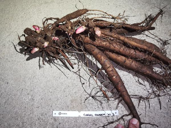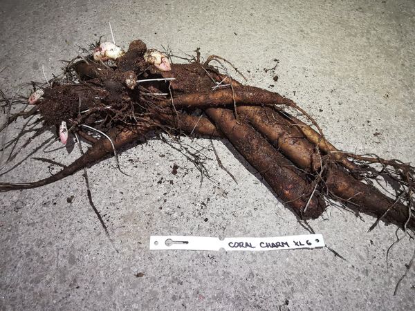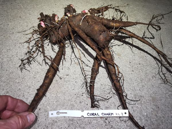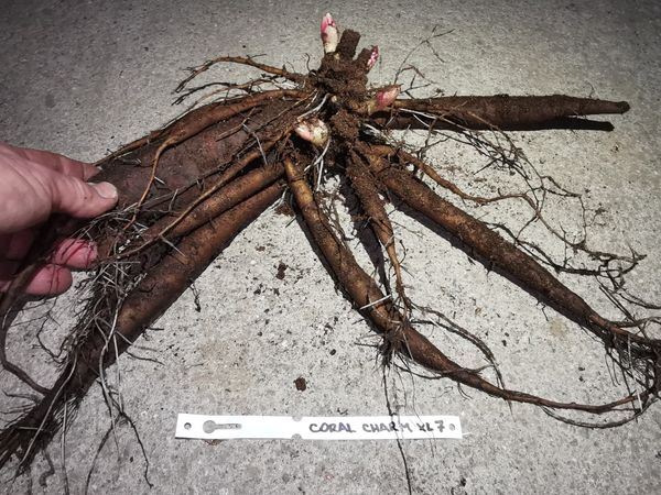 In the case you will order this plant, you will receive exactly the one shown in the photo - XL plant No. 4. Double, deep salmon-pink to coral colour, petals with nice etched edge. The most perfect form of any of the double salmon pink peonies. Flowers lovely fragrant. Normal grower, many thick strong stems, excellent for cutting. Highly awarded, but so far rarely available.