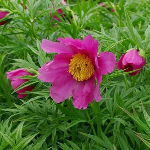 Flowers simple, purplish pink with striking yellow stamens, 8 cm in diameter. After flowering, it produces interesting fruits with shiny black seeds. Very decorative, finely dissected leaves, grows to a height of about 80 cm. Very hardy peony for sunny to semi-shady locations and neutral to calcareous soils, suitable for natural gardens. I am sending three-year-old plants planted in a 2 l container.