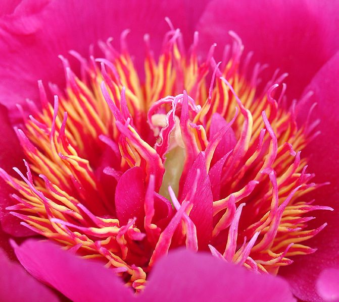 Flowers 10 cm in diameter, simple to semi-double, pink to pinkish red, early flowering. Height only 40-50 cm. Peony for sunny or semi-shady places, suitable for natural gardens.