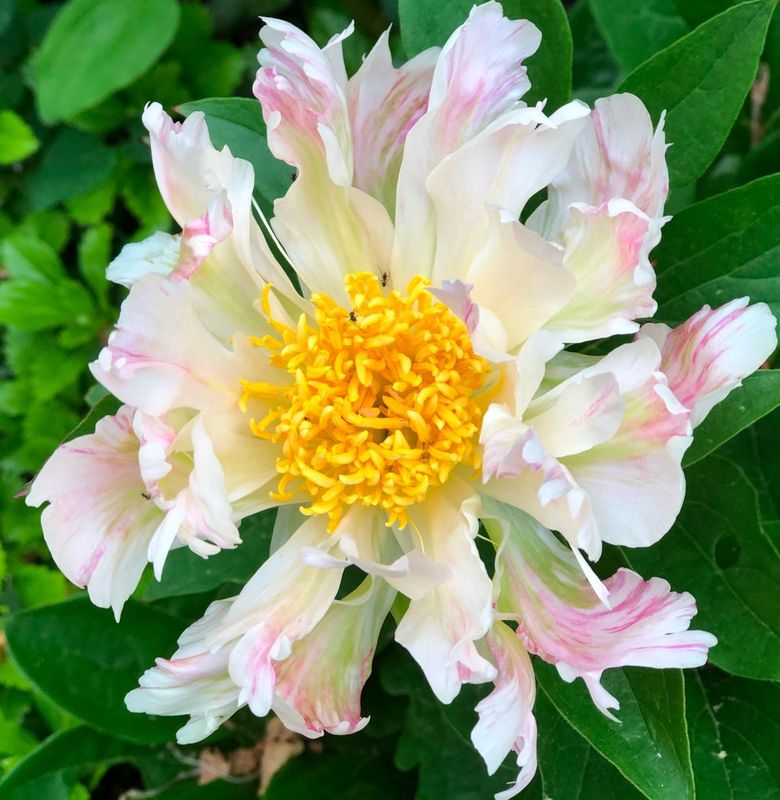 Květy jednoduché, velmi neobvyklého vzhledu, připomínající kaktusové jiřinky. Okvětní lístky při rozkvětu světle zelené, později světle nazelenalé až bílé, na koncích s pastelově růžovým proužkem a zlatožlutými tyčinkami uprostřed. Každý květ je jiný, jednotlivé rostliny se mohou lišit barevností květů. Květy jemně vonné. Silné stonky, lesklé, tmavě zelené olistění, výška rostlin 60 cm. Zcela unikátní pivoňka...